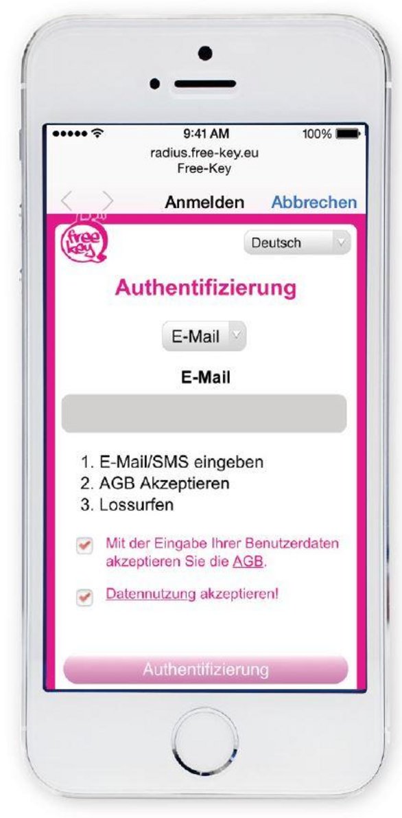 - Danach steht das Netzwerk kostenfrei für drei Stunden zur Verfügung, dann ist ein erneutes Anmelden durch eine weitere Authentifizierung möglich.